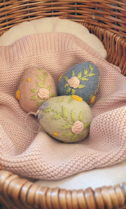 Easter Eggs with Embroidered Flower Decorations